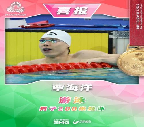 北京时间11月15日晚间,第十五届全运会游泳赛场继续多项冠军争夺,男子200米蛙泳项目上,上海运动员覃海洋完全没有给他人机会,他在50米后就取得领先,150米后已经领先第二名一个身位,最终以2分07秒69的成绩赢得冠军!恭喜覃海洋!另一位上海运动员郑英昊以2分13秒81的成绩位列第6。