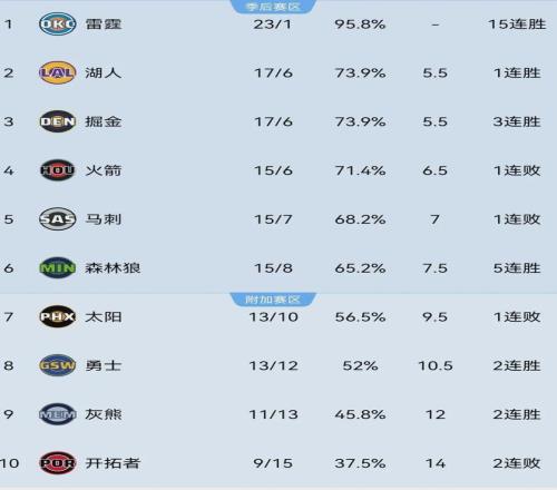 说回勇士,这段时间的表现可圈可点,连续三场将对手的得分限制在100分以内,迄今为止以13胜12负排名西部第八,但还是落后西部第六的森林狼三个胜场。