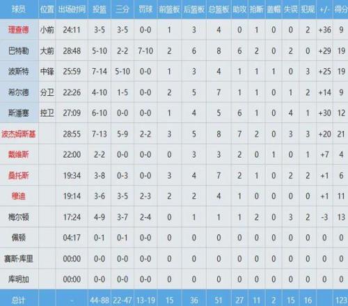 勇士数据如下: