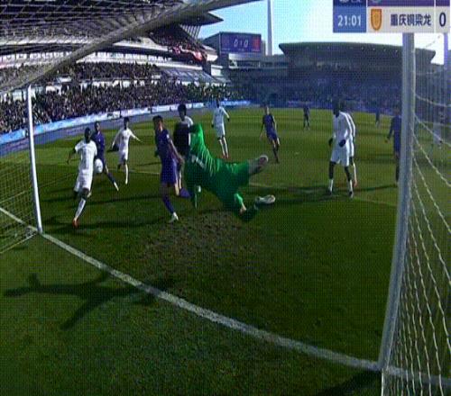 第45分钟,肯帕努定位球大脚开到禁区,门将闫炳良飞身将球击出。